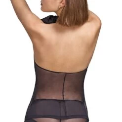 Spektakuläres Prêt-à-porter-Oberteil komplett aus Seide und Spitze. Mit einer großen Schleife verziert. Kann sowohl als inneres als auch als äußeres Kleidungsstück getragen werden. Verleiht Ihrem Alltagslook einen Hauch von Sinnlichkeit. Black on black, elegant und sinnlich.