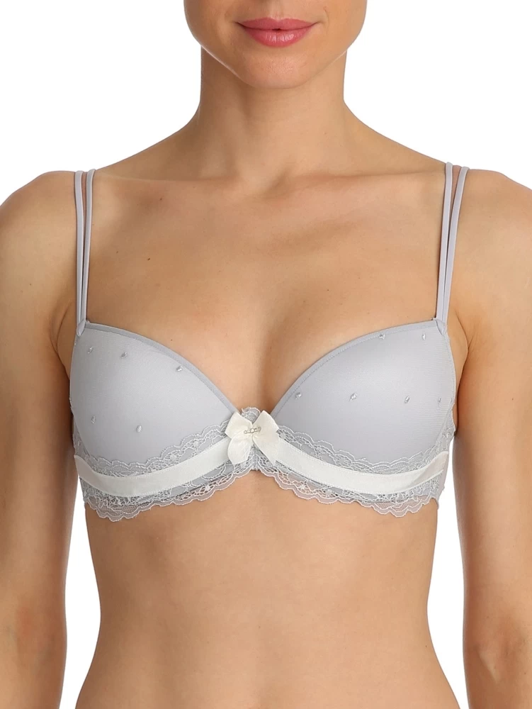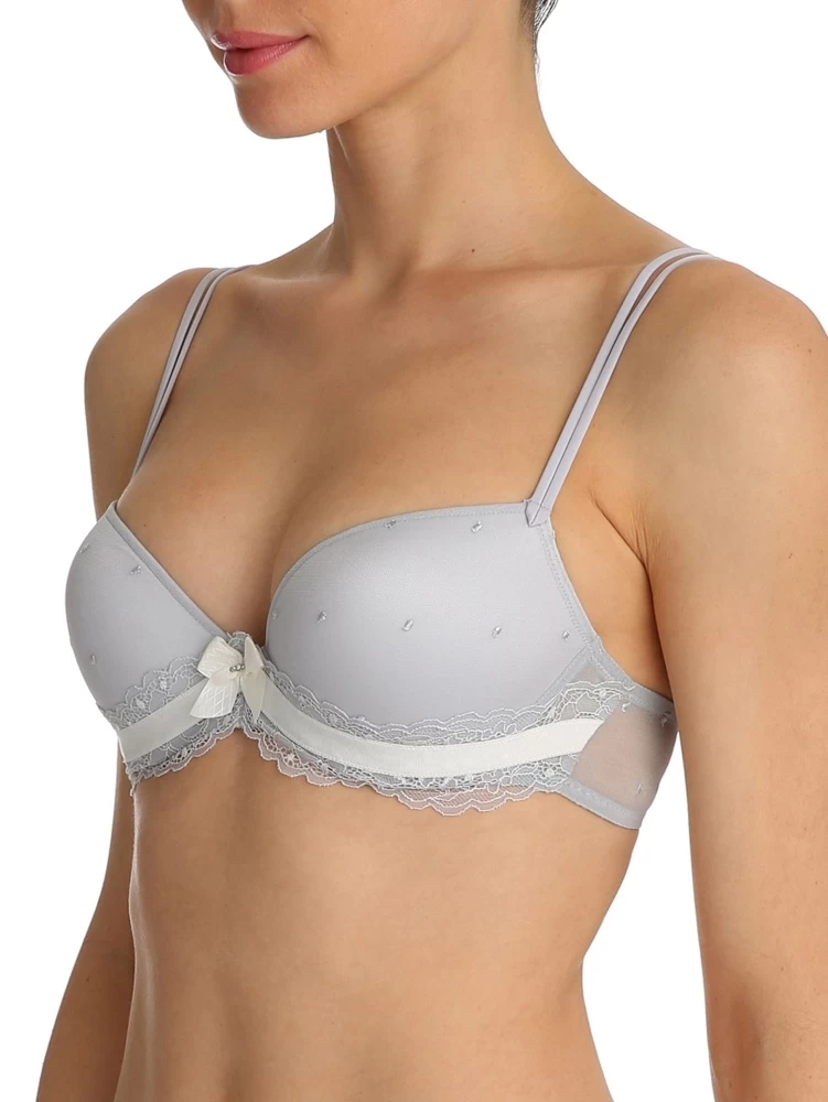 Verführung nach allen Regeln der Kunst. Bei diesem Push-up-Modell mit progressiver Cup-Verdickung ist Sinnlichkeit oberstes Gebot. Süße Noppen und opulente Spitze zeichnen dieses Modell aus. Hebt und zentriert den Busen. Lässt tief blicken! Reinste Klasse in einem Mix aus Grau und Creme.