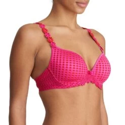 Unterlegter BH mit gepolsterten Cups mit herzförmigem Ausschnitt. Die Träger können gerade oder als Neckholder-Modell getragen werden (außer in den „Tiny“-Farben). Der gerade Rücken mit Silikonband sorgt für zusätzlichen Halt.