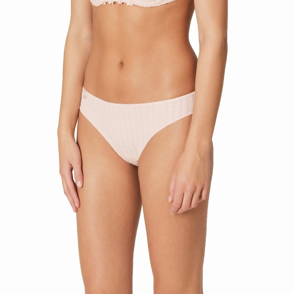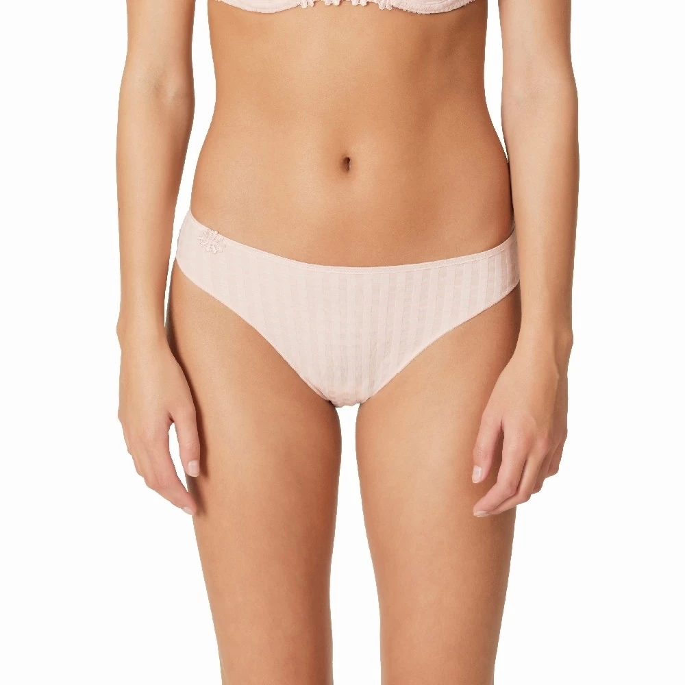 Ein stilvoller Rioslip, der mit subtiler Blumenstickerei versehen ist. Ein dünnes Band am Po gewährleistet, dass sich der Slip unter der Kleidung nicht abzeichnet.