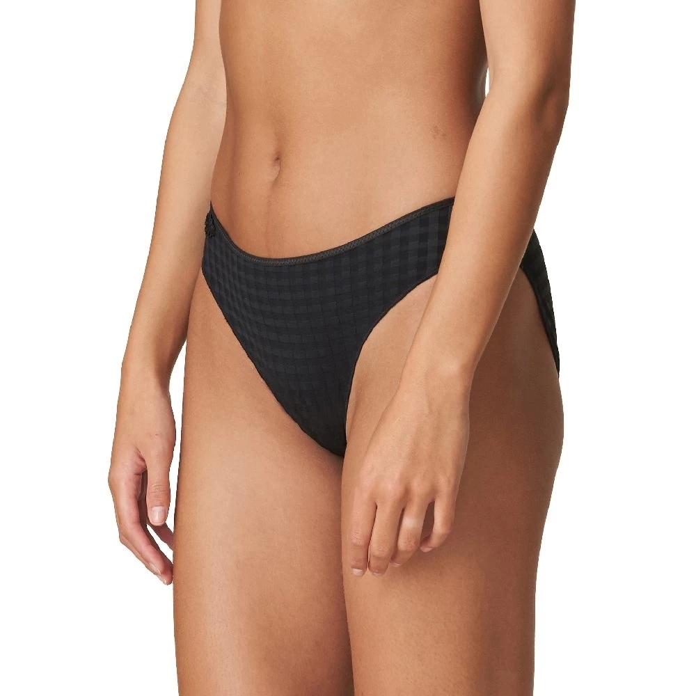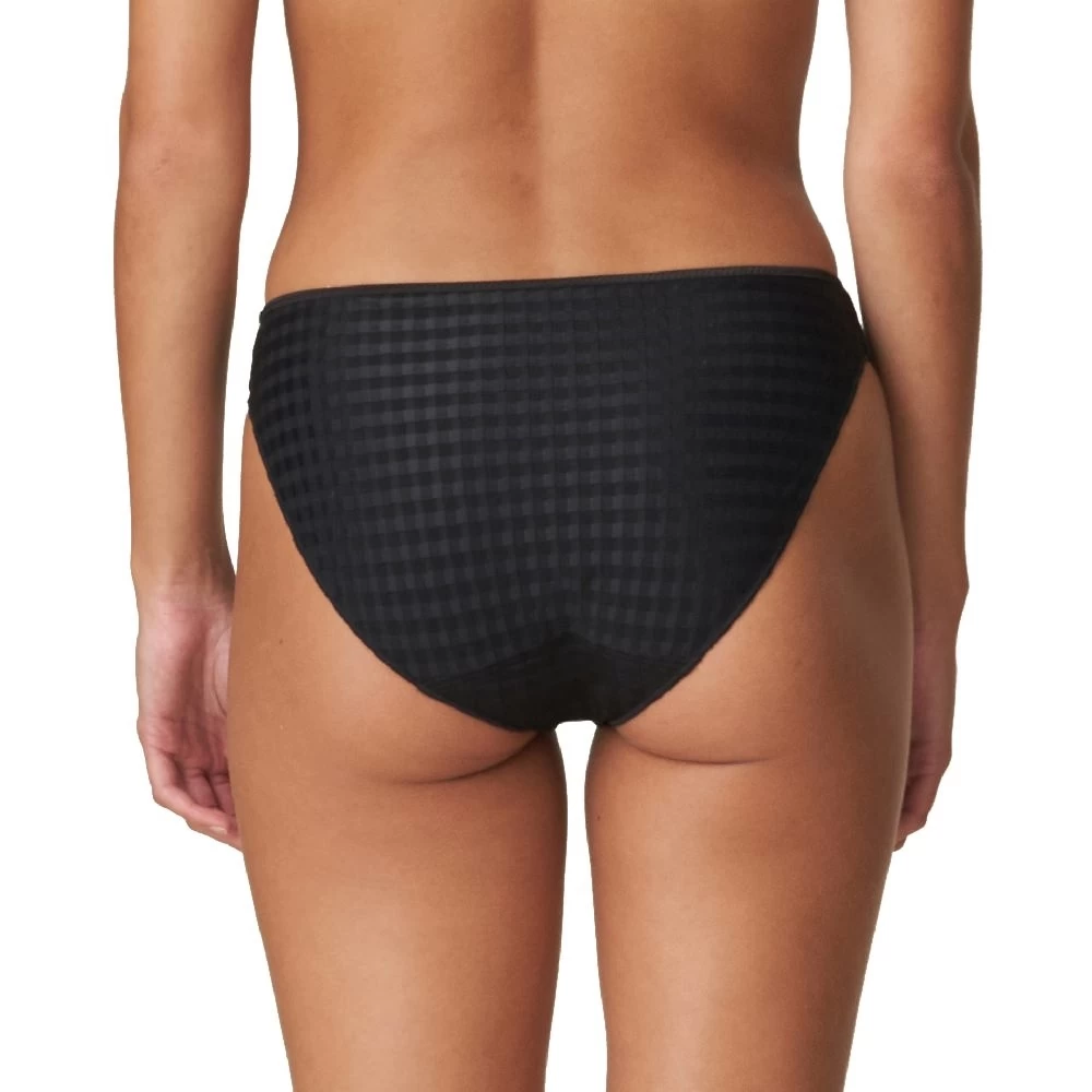 Ein stilvoller Rioslip, der mit subtiler Blumenstickerei versehen ist. Ein dünnes Band am Po gewährleistet, dass sich der Slip unter der Kleidung nicht abzeichnet.