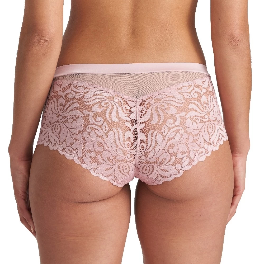 Verführerische Shorts aus Spitze mit glänzendem Bund. Am Po betört eine Kombination aus üppiger Spitze und luftigem Tüll.Die Shorts sind mit dünner, flacher Spitze besetzt, die sich unter der Kleidung nicht abzeichnet.