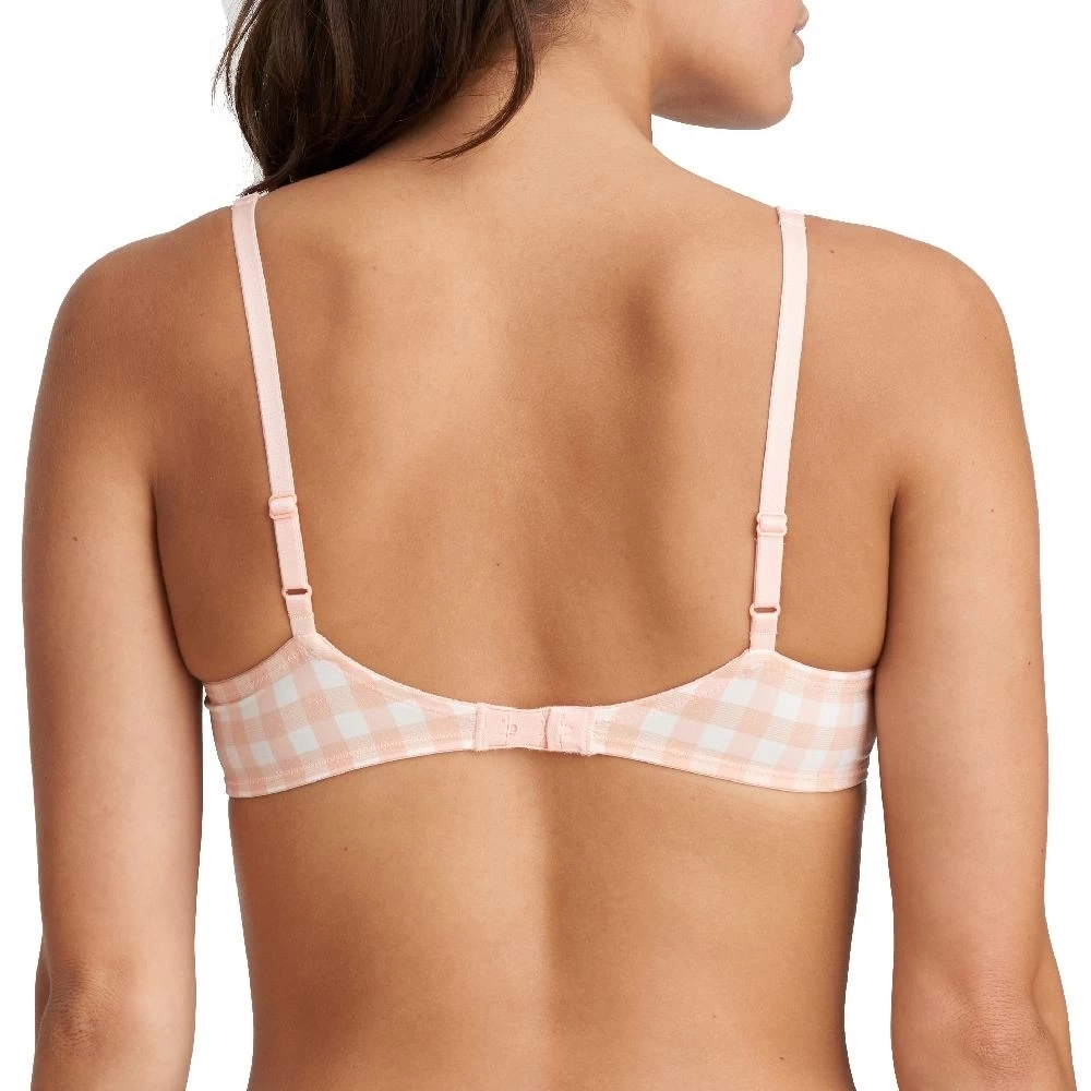 Die Cups dieses Balconette-BHs sind mit einer schwarzen Spitzeneinfassung versehen. Die anspruchsvolle Guipurestickerei betont Ihr verführerisches Dekolleté zusätzlich. Die Unterseite der Cups ist aus einem modischen Karostoff mit goldfarbenem Akzent. Der Karostoff geht in den Rückenteil über. Die dünnen Spaghettiträger in Schwarz runden den eleganten BH ab.
