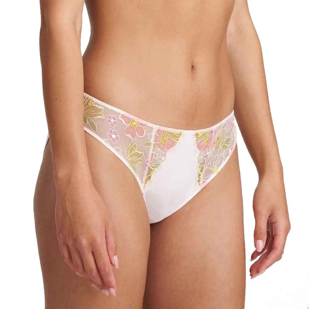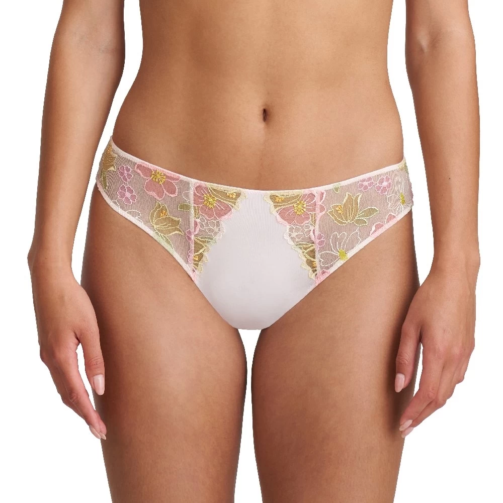 Sommerlicher Slip mit raffinierter Blumenstickerei und Tüll.