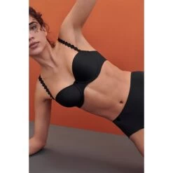 Trägerloser BH mit Bandeau-Cupschnitt Der gerade Rücken ist mit einem elastischen Bändchen gefertigt, das zusätzlich unterstützt. Graphit ist ein Dunkelgrau und wirkt weicher auf der Haut als Schwarz.