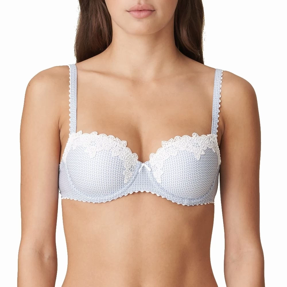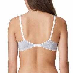 Ein T-Shirt-BH mit kesser Blumenspitze … Die verführerische Linienführung dieses Balconette-BHs mit glatten gepolsterten Cups wird durch die Guipurestickerei mit Blümchen