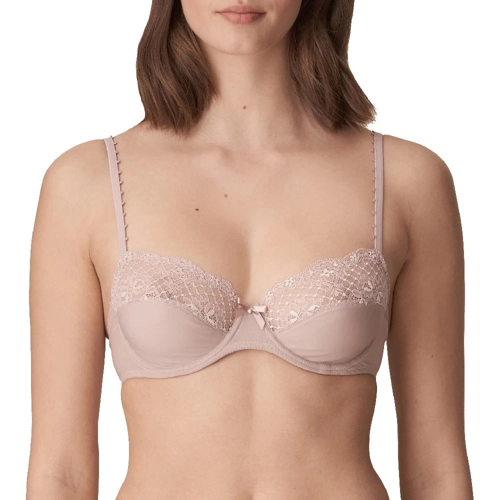 Edle Calais-Spitze aus Frankreich, ein Mikrofaserstoff aus Italien, eine anmutige Perlenstickerei … Verführung mit allen Mitteln war das Motto bei diesem Bügel-BH-Design. Selbstverständlich so komfortabel wie gewohnt! .