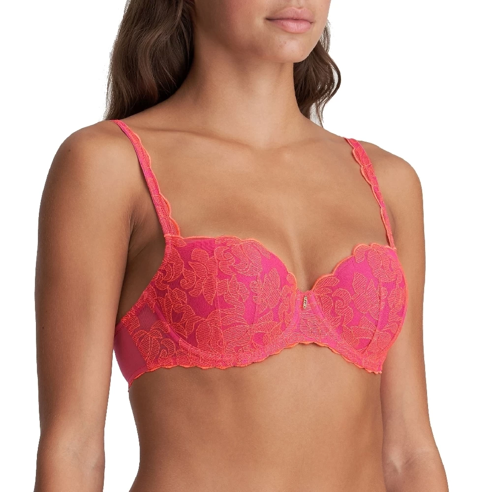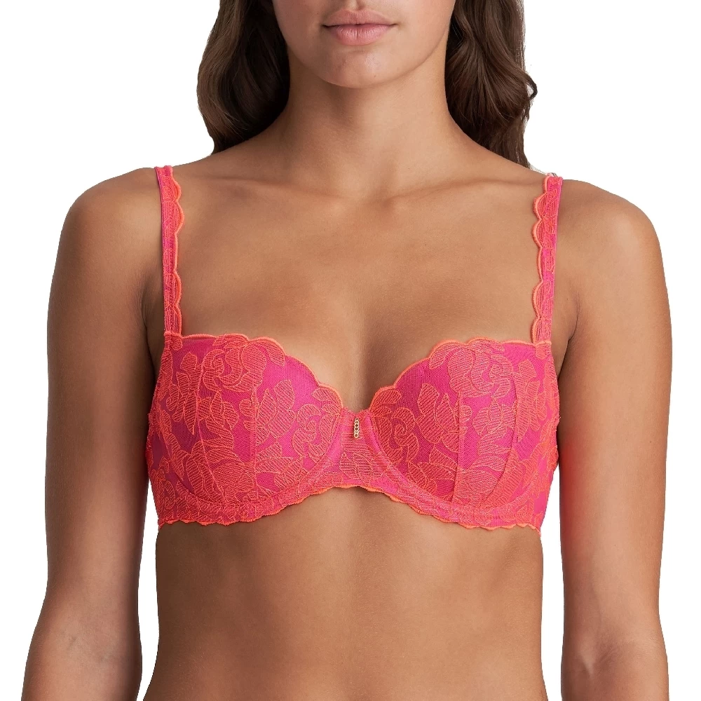 Setzen Sie mit diesem aufregenden und angesagten Balconette-BH ein Statement! Die elegante Blumenstickerei verleiht den gepolsterten Cups eine opulente Optik. Haben Sie die zarten Bögen an den Trägern und am unteren Rand der Cups schon entdeckt? Details machen den feinen Unterschied … Die angesagte Kombination aus knalligem Pink und Orange lässt Ihren Teint strahlen. Luminoso ist eine schmeichelhafte und originelle Farbkombination.