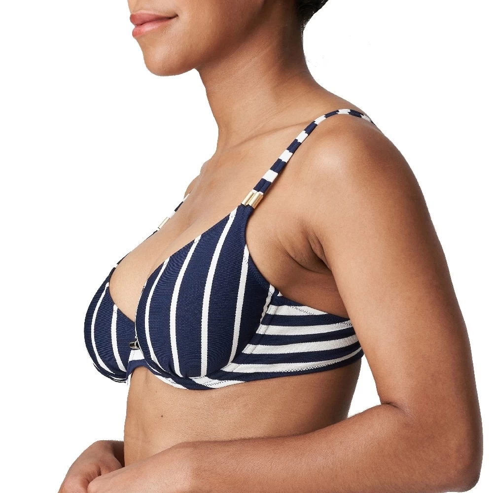 Dieses Bikini-Oberteil kokettiert mit dem Aussehen eines jugendlichen, sportlichen Triangel-Bikinis, bietet aber dennoch den Komfort und Halt eines Bikinis mit Bügel und Vollschale. Stilvolle Optik und eine unschlagbare Passform: Dieser Bikini bietet beides! Mit seinen eleganten Streifen und raffinierten Details ist er ein echtes Must-have. Die raffinierten Träger können gerade oder als Neckholder-Modell getragen werden.