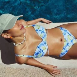 Ein sommerliches tief ausgeschnittenes Bikini-Oberteil, das perfekt sitzt und Ihr Dekolleté zentriert.