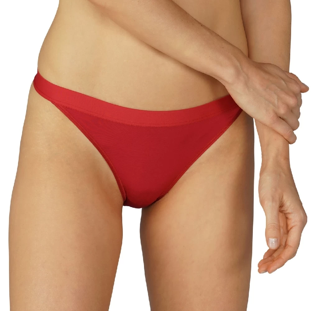Dieser Tanga im Farbton Rubin hat das Zeug, zum neuen Liebling in Ihrer Dessous-Schublade zu werden. Dank raffiniertem Design, hochwertiger Materialien und bester Verarbeitung garantiert der Tanga Ihnen besten Tragekomfort und ein einzigartiges Körpergefühl während des ganzen Tages. Der Tanga sitzt mit seiner perfekten Passform und dank dem anschmiegsamen Viskose-Elastan-Mix unter jedem Outfit optimal. Durch das besonders leichte Dessousmaterial trägt er sich wie eine zweite Haut. Flache Nähte, elastische Abschlüsse sowie ein Baumwolleinsatz auf der Schrittinnenseite sorgen für den größtmöglichen Wohlfühlfaktor. Mey Poetry – von diesen Slips haben Sie nie genug!