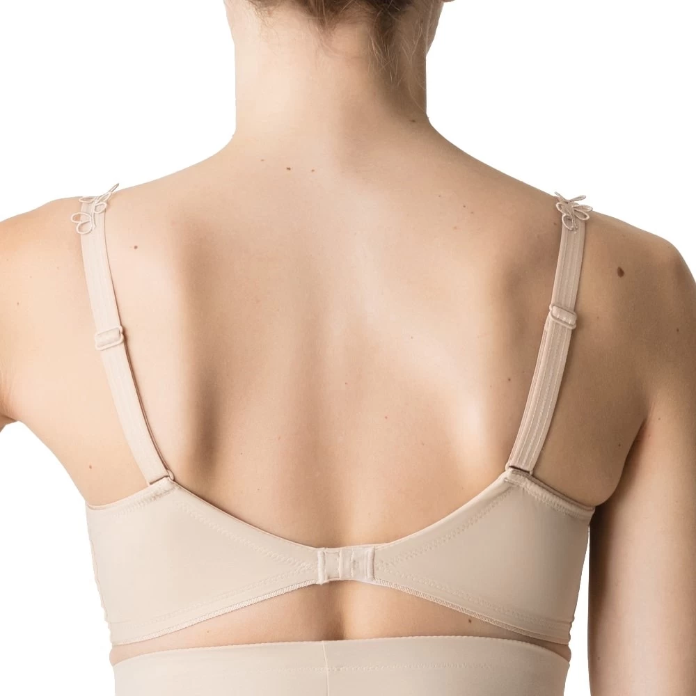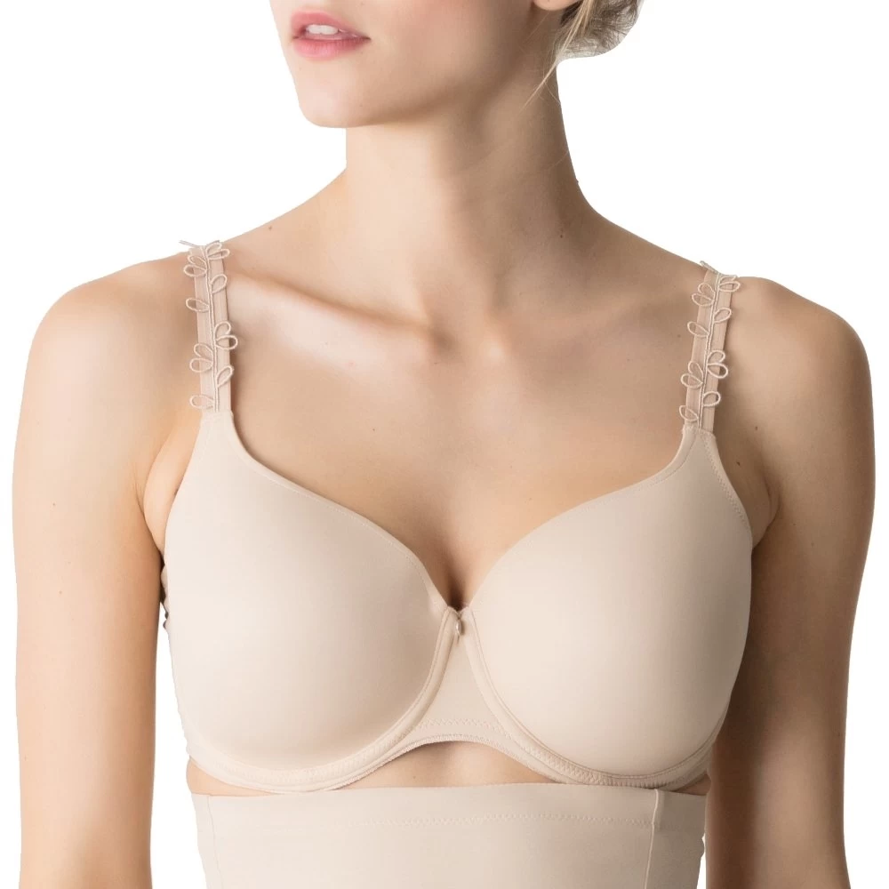Vorgeformter, unterlegter BH mit einem überaus eleganten Dekolleté. Das Modell verleiht dem Busen eine natürliche runde Form. Ein feines Gipüremotiv auf den Trägern lockert die glatte Optik mit einem femininen Touch auf. Die festen, vorgeformten Cups heben und zentrieren den Busen, der eine natürliche runde Silhouette erhält. Der raffinierte Ausschnitt lässt einen Teil des Oberbusens hervorblitzen. Nichtsdestotrotz umfangen die Cups den Busen komplett. Dadurch entsteht ein optimaler Tragekomfort. Perfekt für große Cup-Größen.