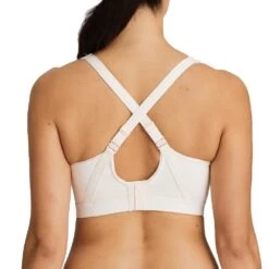 Glatt, bequem und elegant. Dieser glatte Sport-BH mit Bügeln kann wirklich unter allem getragen werden. Das feine Muster verleiht eine leichte Optik, die Träger können gerade oder gekreuzte getragen werden. Bezaubernd unter einem Sporttop mit oder ohne Racerback! .