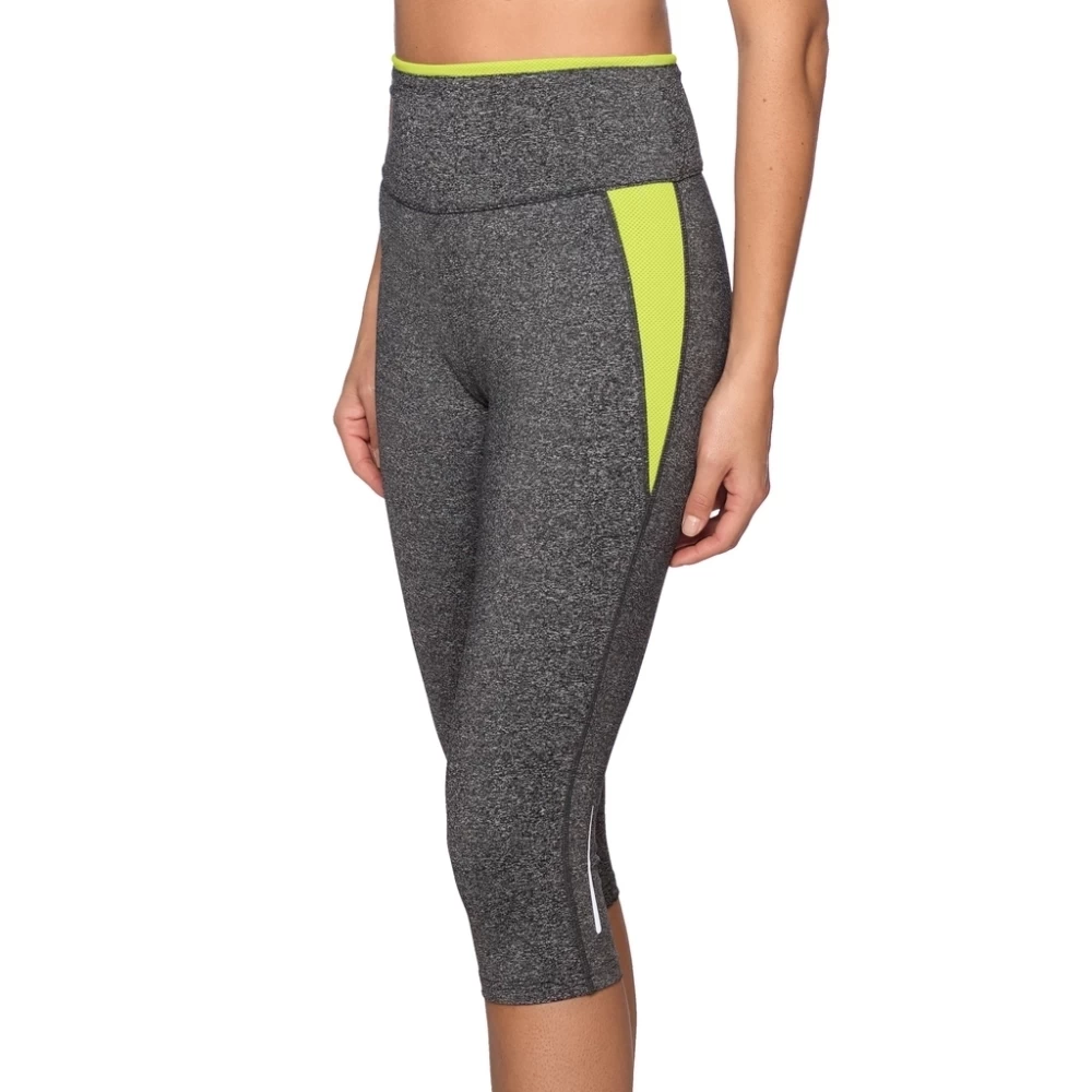 Die Capri-Hose aus dry-fit-Stoff reicht genau bis unter dem Knie. Oben reicht sie bis an den Bauchnabel. Die clevere Ausführung des fluoreszierenden Stoffs kreiert eine stilvolle Silhouette. Mit kleiner Gesäßtasche. Der weiche Stoff sitzt hervorragend und strafft den Po und die Beine. Das feste Taillenband formt den Bauch und die Taille. Der untere Saum schneidet nicht ins Gewebe.