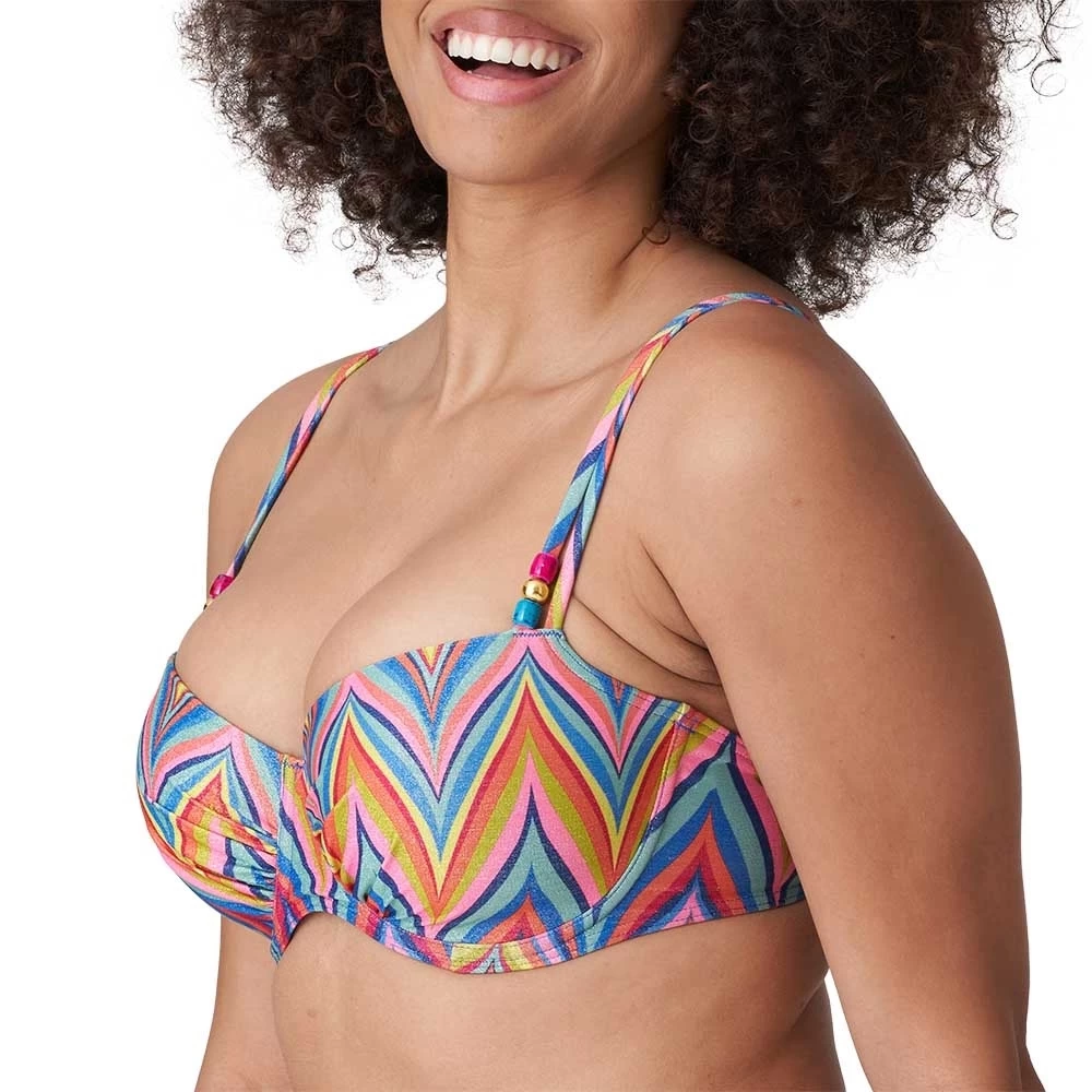 Topmodisches Bikini-Oberteil in Balconette-Optik mit gepolsterten Cups und mehrfarbigen Missoni-Streifen. Die Multiway-Träger können gerade oder als Neckholder-Modell getragen werden. Seventies-Glamour für den Strand!