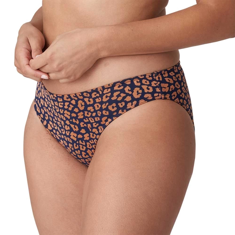 Angesagter Bikini-Rioslip aus einem Jacquard-Bademodenstoff mit Tierprint.