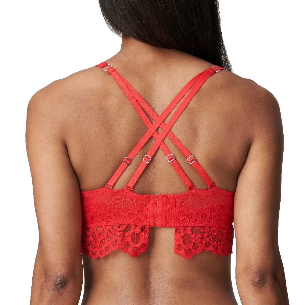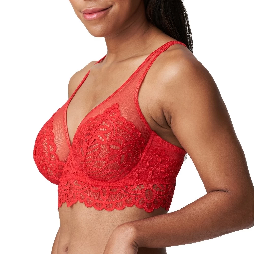 Longline-Triangel-BH mit besonders viel Spitze vorne, an den Seitenteilen und am Rücken. Die Triangel-Cups bedecken den Busen vollständig, die tief angesetzte Spitze sorgt für einen umwerfenden Effekt.