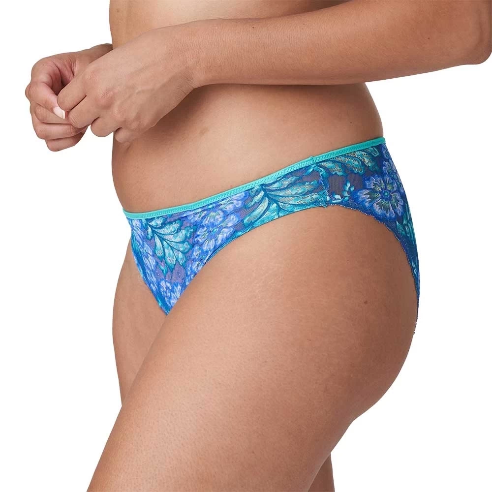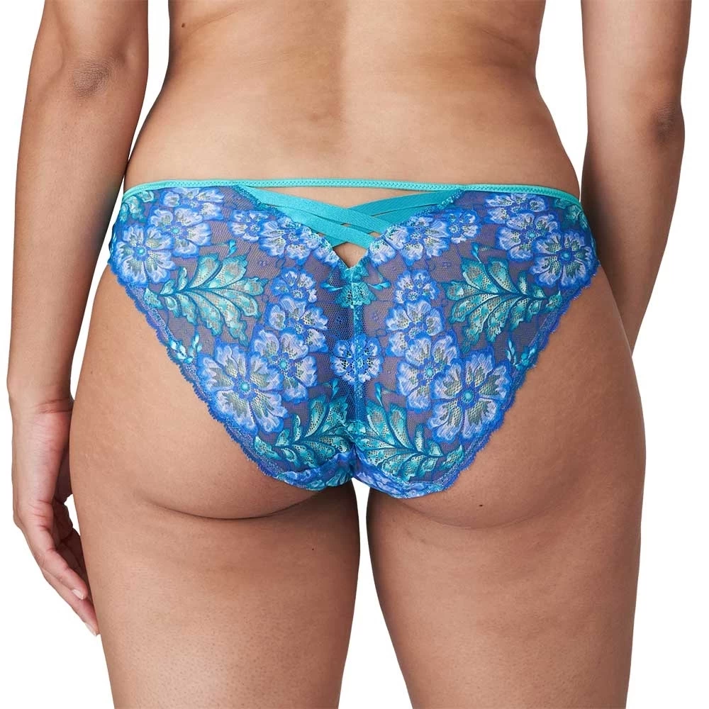 Rioslip aus farbenfroh bedruckter, recycelter Spitze mit sexy Schnürung am Rücken.