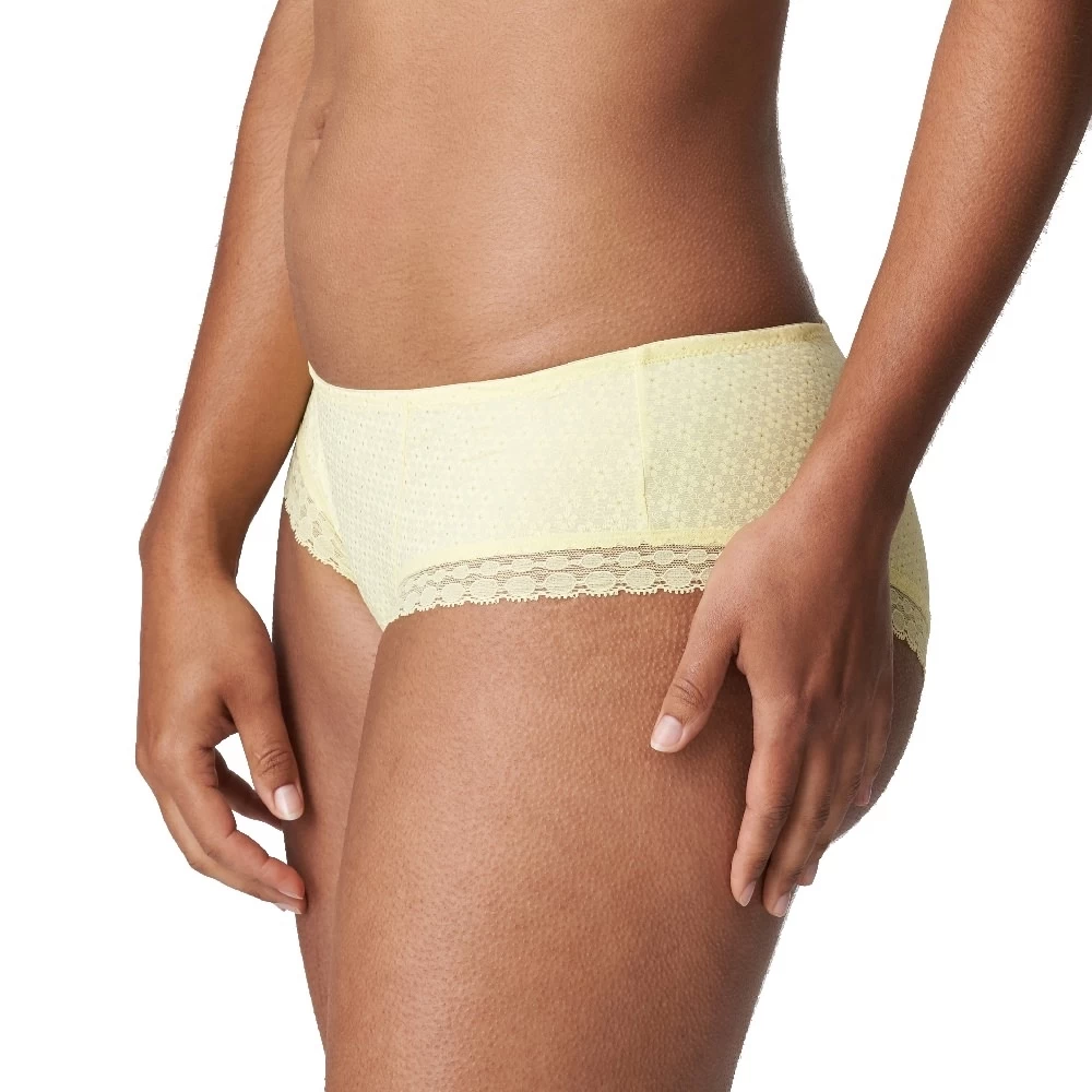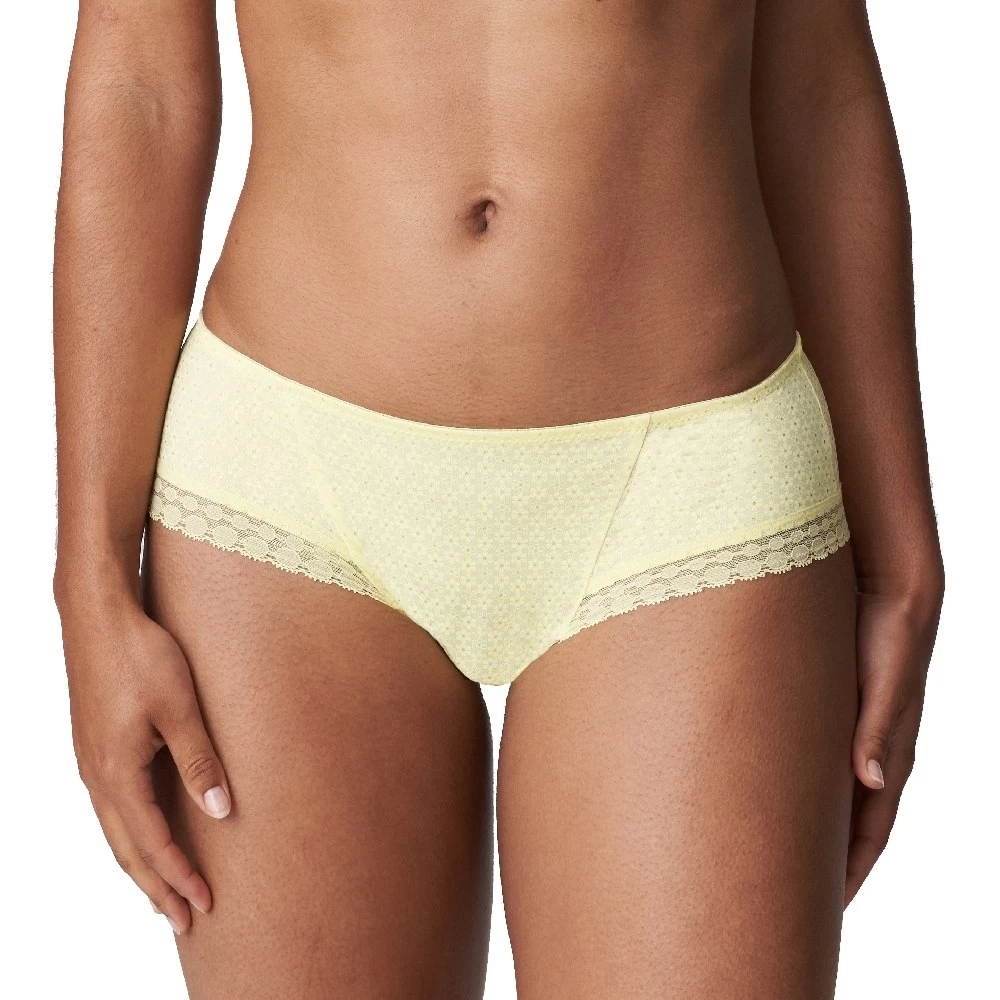 Topmodisch, aufregend und vollkommen glatt: Hotpants mit sommerlichem Retro-Muster und koketter Spitze am Po.
