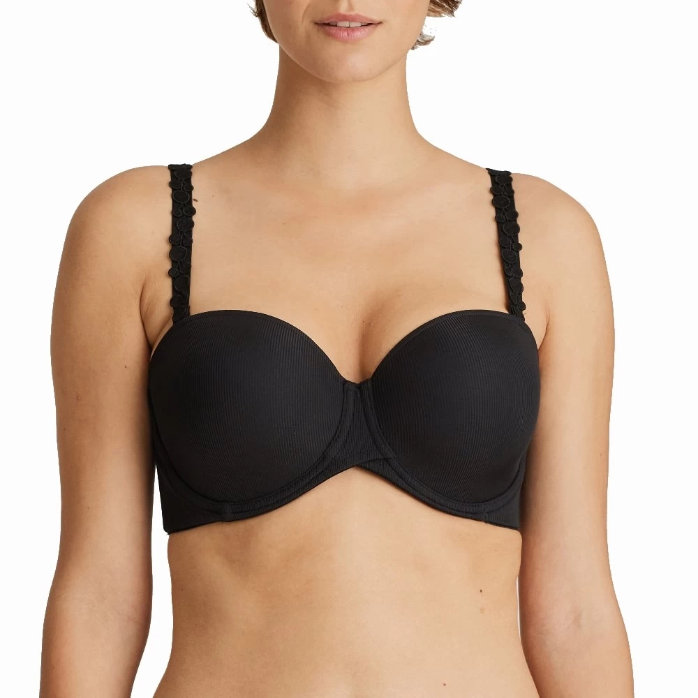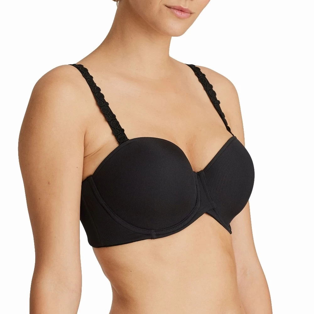 Trägerloser BH mit gepolsterten Cups, ideal unter sommerlichen Tops und Kleidern. Feiner Rippstoff, ein gekreuzter Steg und abnehmbare, mit Bläschen verzierte Träger verleihen Ihnen