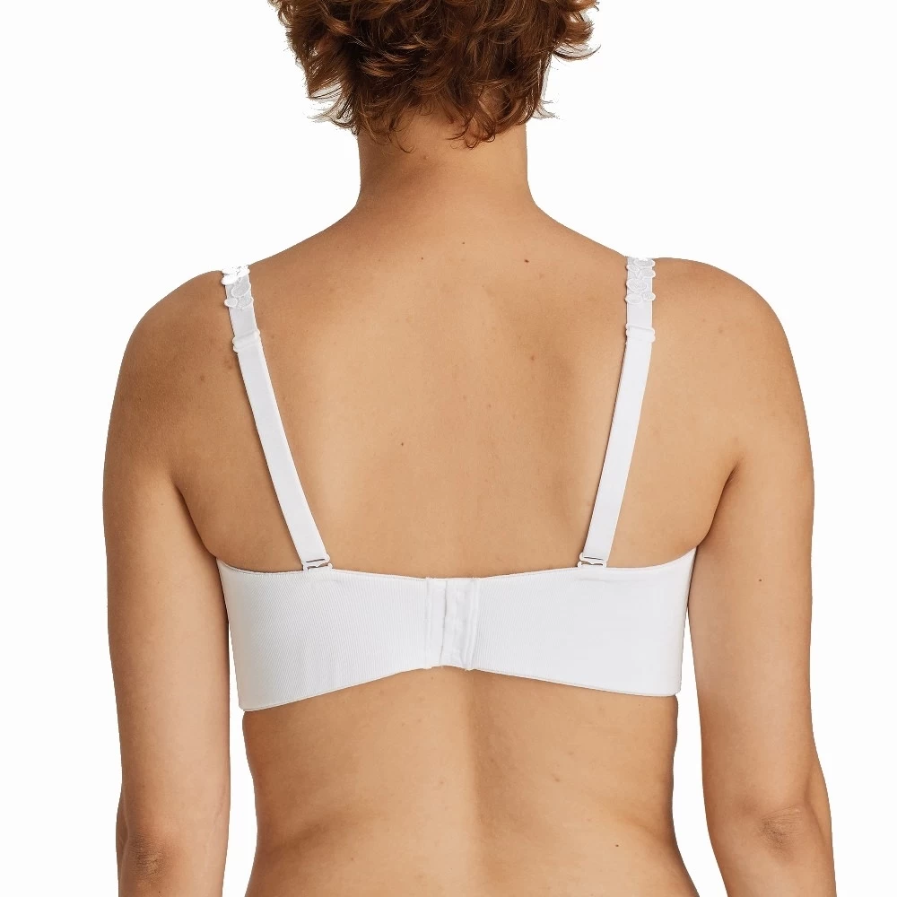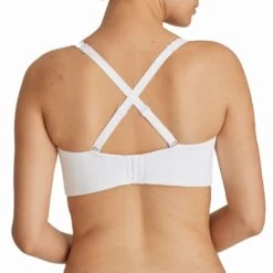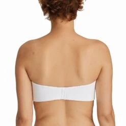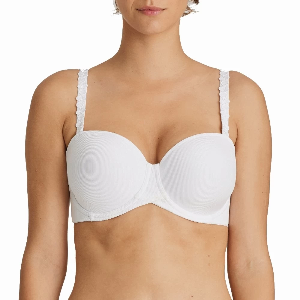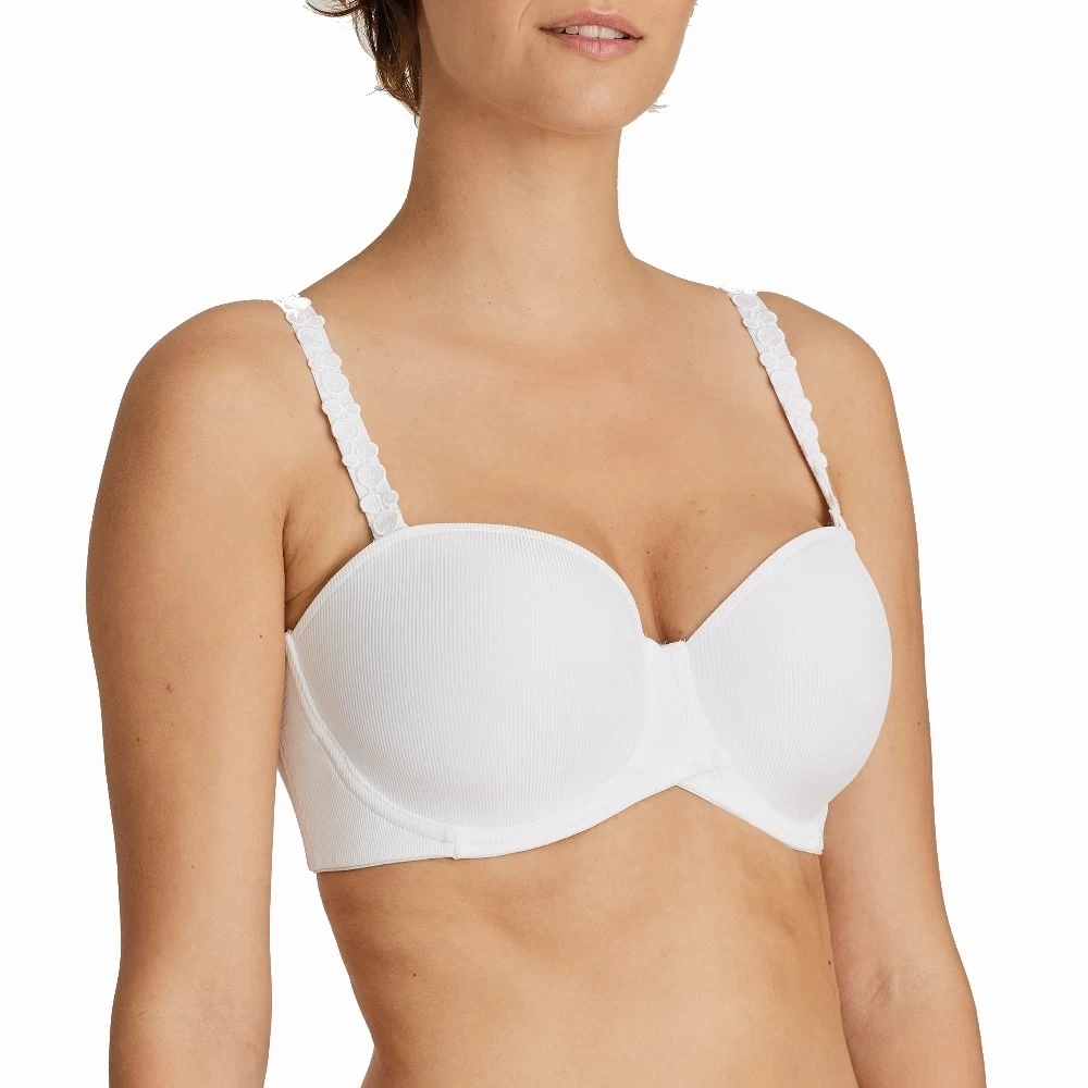 Trägerloser BH mit gepolsterten Cups, ideal unter sommerlichen Tops und Kleidern. Feiner Rippstoff, ein gekreuzter Steg und abnehmbare, mit Bläschen verzierte Träger verleihen Ihnen
