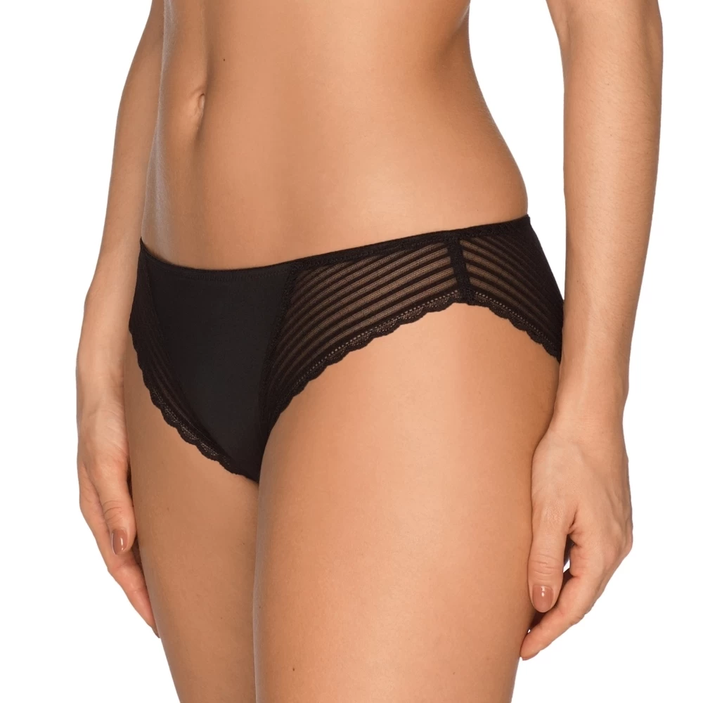 Luxuriöser, verführerischer, italienischer Slip nach einem Riomodell gefertigt; hinten vollständig aus halbtransparenter Spitze. Die eleganten Beinabschlüsse lassen die Figur zierlich wirken. Verschwenderisch verarbeitete Spitze betont den luxuriösen und sexy Look extra.