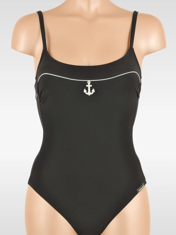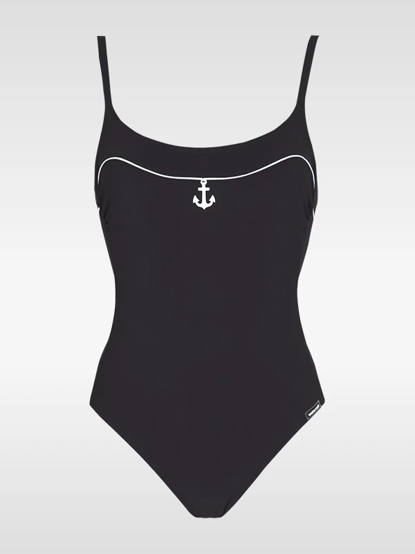 Schicker Badeanzug mit schmalen Trägern und schönem Rückenausschnitt.